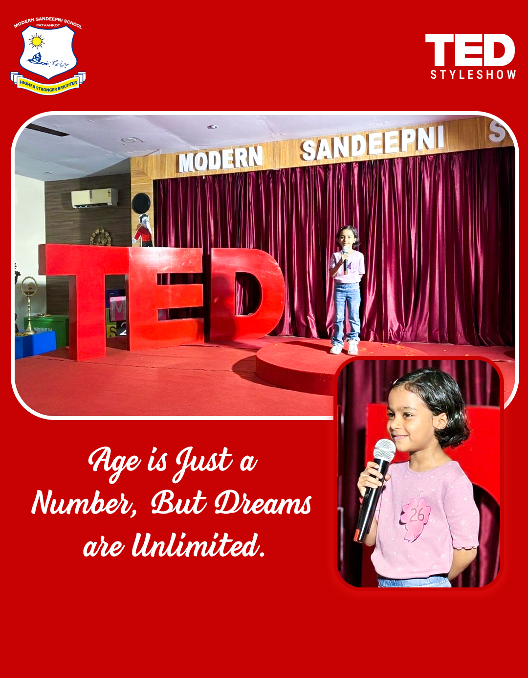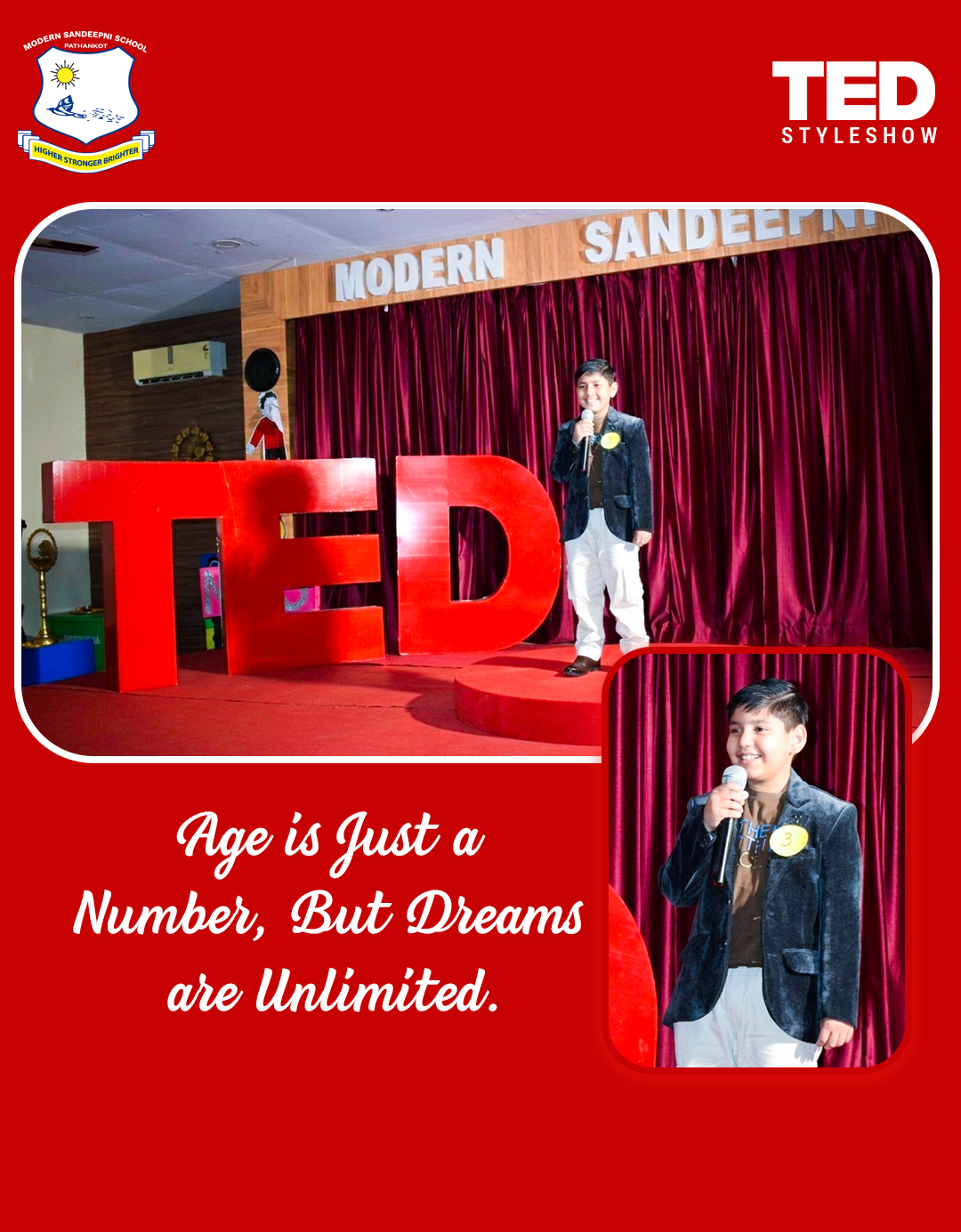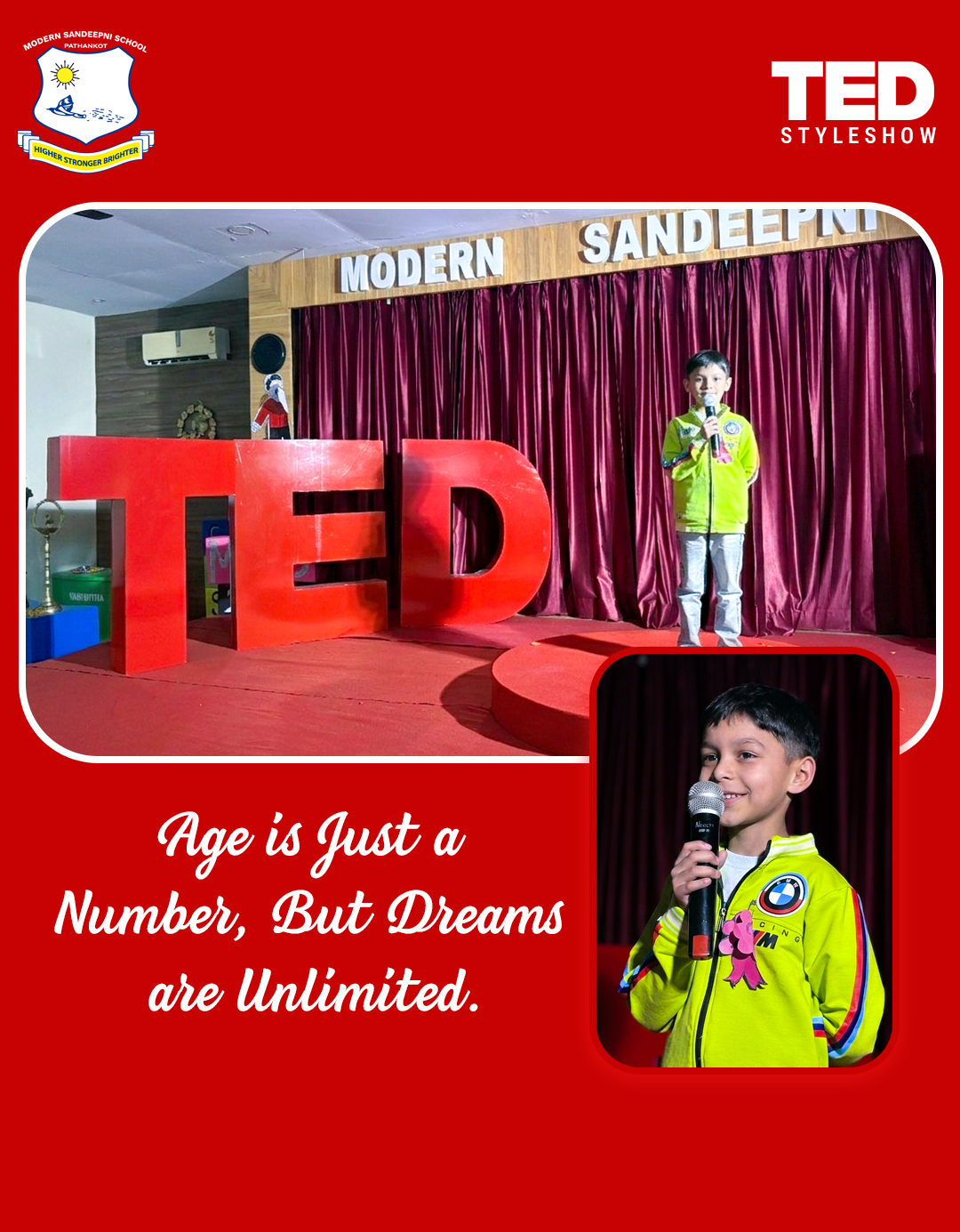 Modern Sandeepni School in Pathankot, Punjab, hosted a TED-style student talk show aimed at nurturing young minds to think boldly and speak confidently. Students shared inspiring ideas, personal experiences, and innovative thoughts on stage, creating an environment of learning and motivation. The event was carefully planned and executed to give students a real-world public speaking experience while boosting their confidence and creativity.