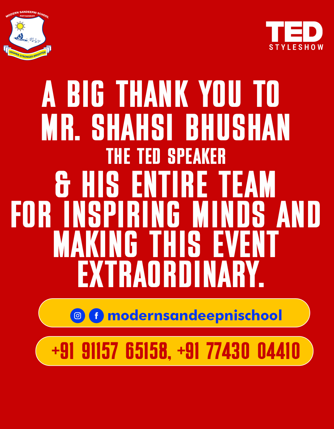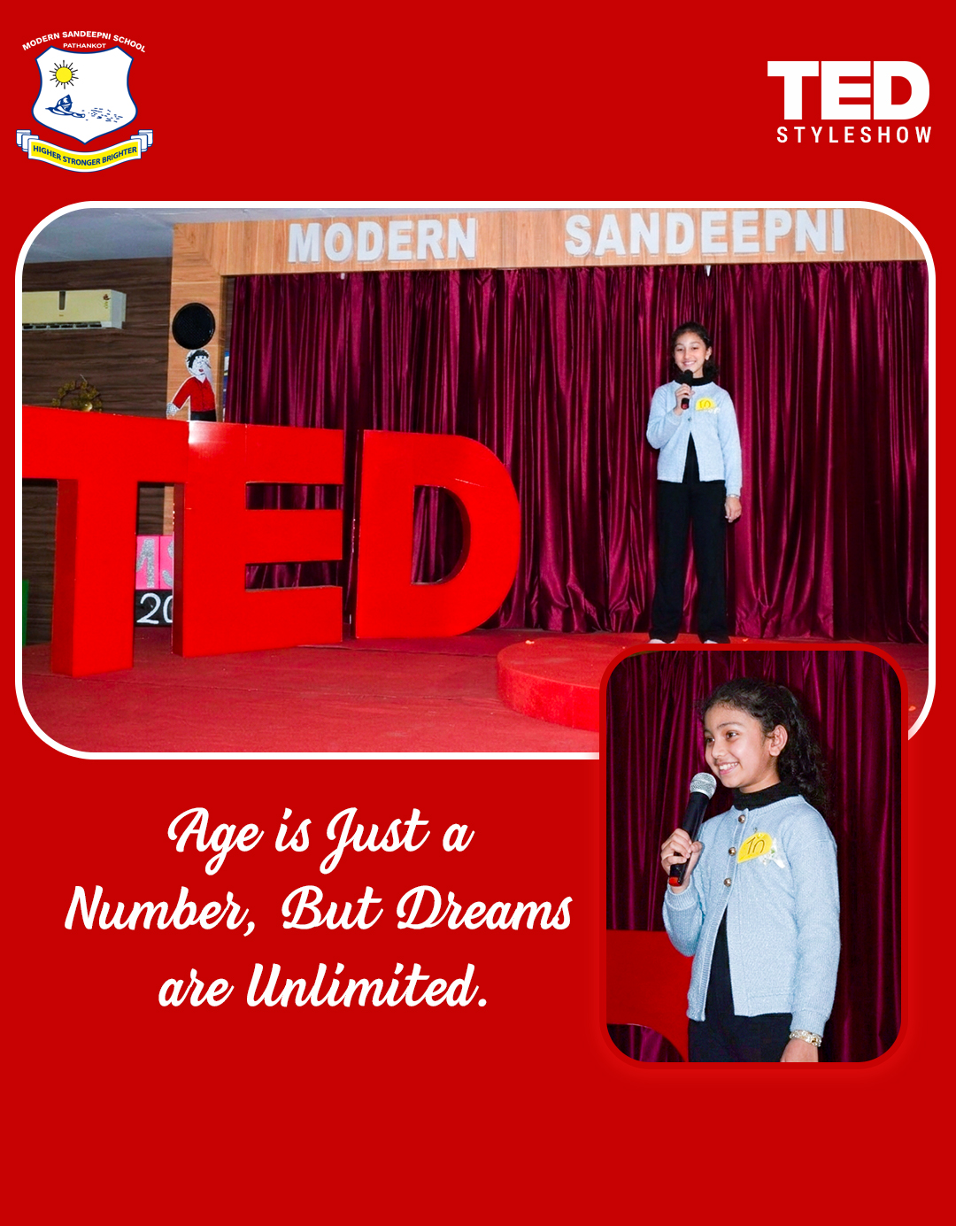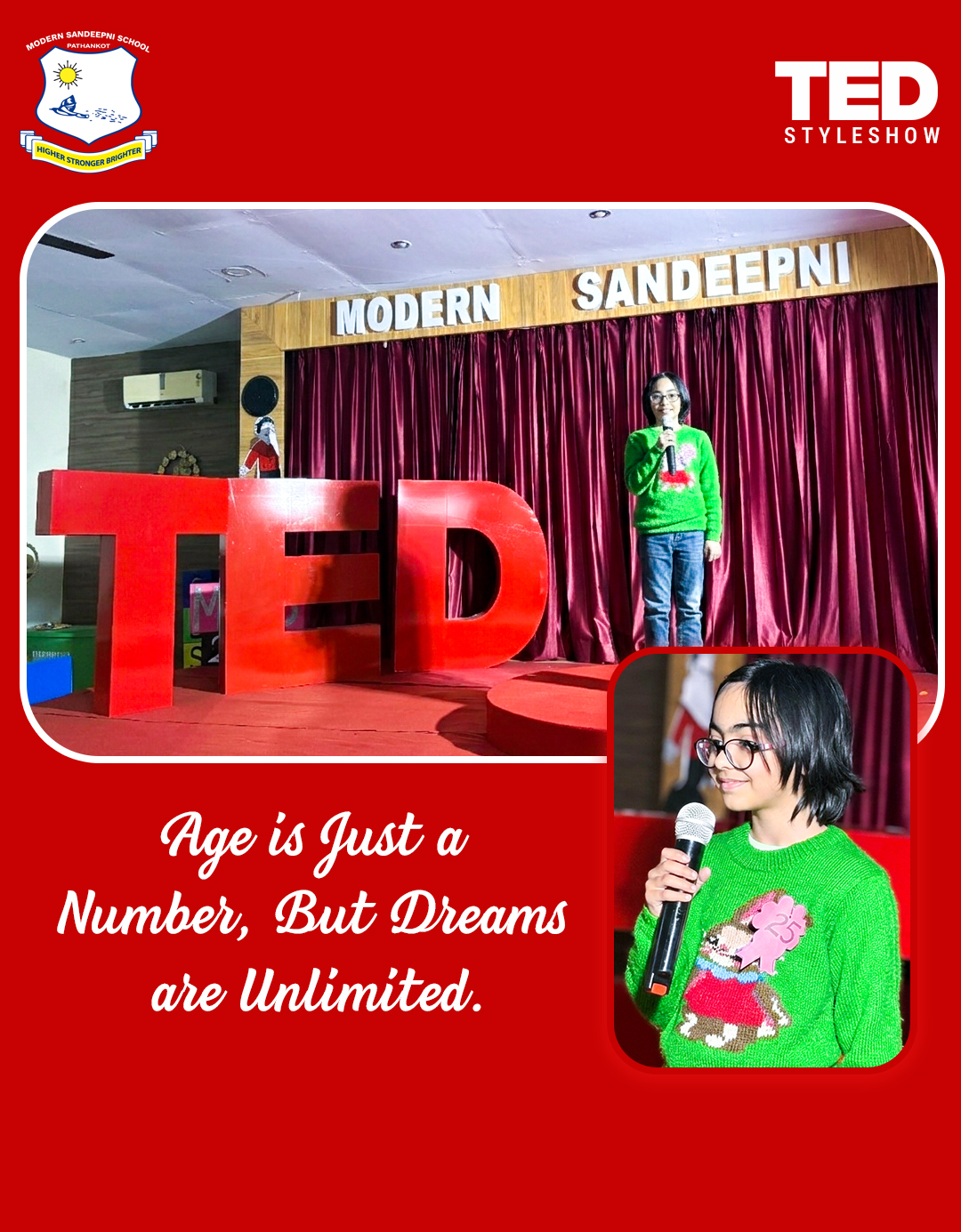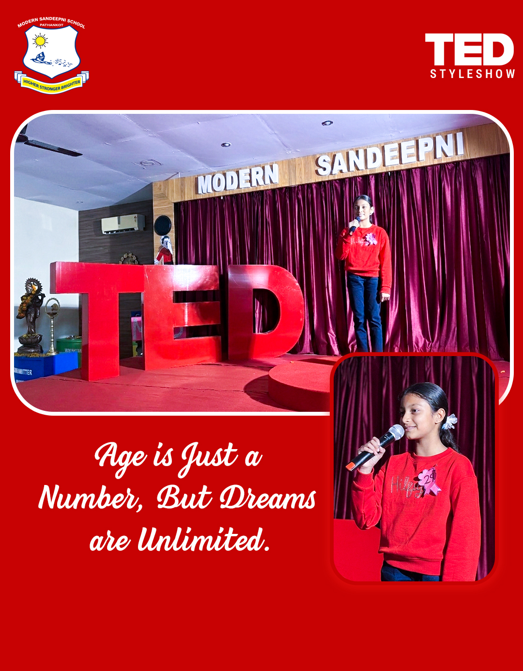 Modern Sandeepni School in Pathankot, Punjab, hosted a TED-style student talk show aimed at nurturing young minds to think boldly and speak confidently. Students shared inspiring ideas, personal experiences, and innovative thoughts on stage, creating an environment of learning and motivation. The event was carefully planned and executed to give students a real-world public speaking experience while boosting their confidence and creativity.